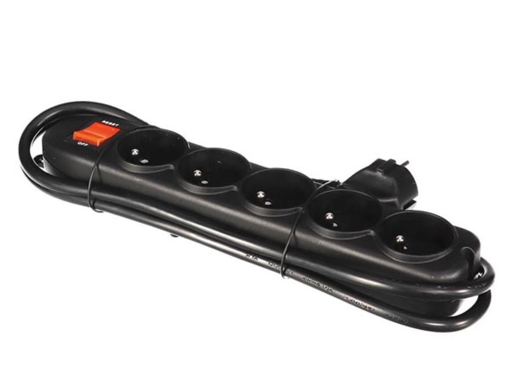 Perel Steckdosenleiste mit Schalter, Überlastschutz, 5 Steckdosen Typ E, Kabel 1.5 m, 3G1.5, Innenbereich, Schwarz