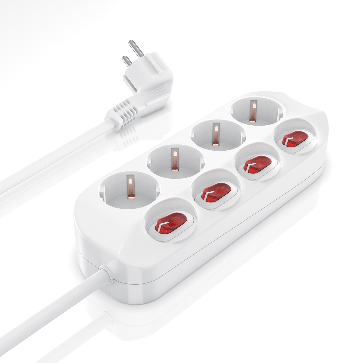 BEARWARE Steckdosenleiste Mehrfachsteckdose Steckerleiste 3680W, 6-fach