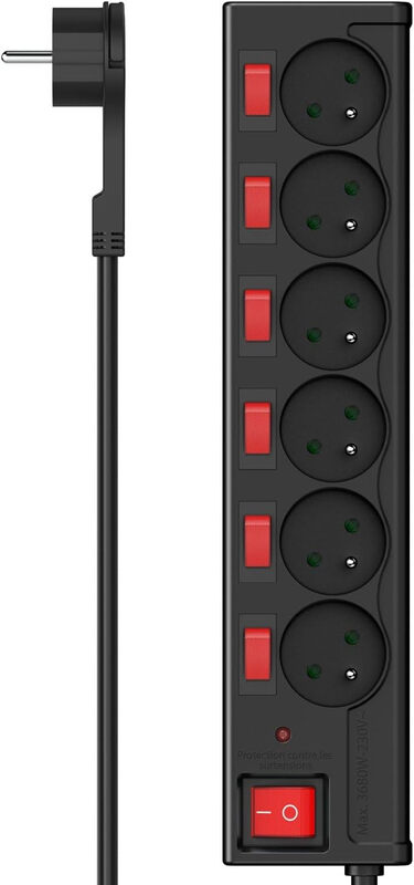 Arendo Steckdosenleiste Mehrfachsteckdose Steckerleiste 3680W, 6-fach