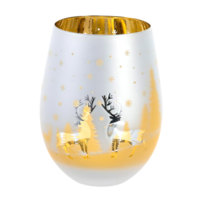 MyGift Weihnachts-Weingläser ohne Stiel, Messing-Ton, 414 ml, 4er-Set, Frost-Schnee-Design