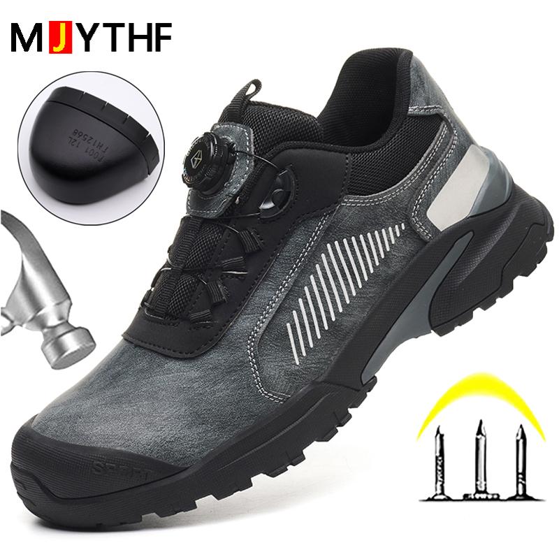 Waterproof Safety Shoes Men Rotating Button Work Sneakers Male Anti-Smash Breathable Work Shoes Man Air Cushion Steel Toe Shoes cm