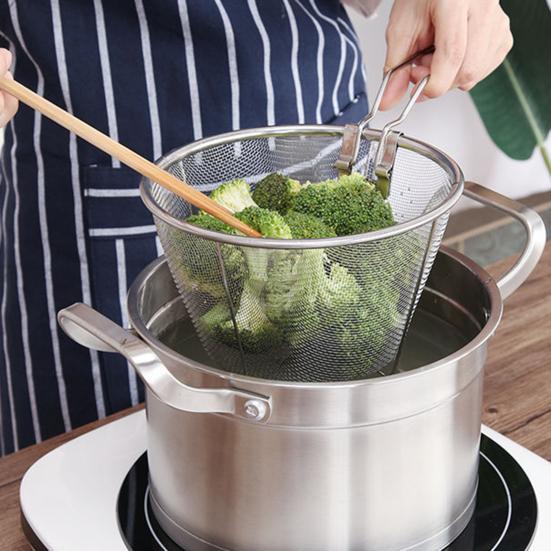 Collapsible Deep Fryer Basket Stainless Steel Fry Basket with Foldable Handle 6/7 Inch Round Wire Mesh Basket for Kitchen Frying Chicken Snacks