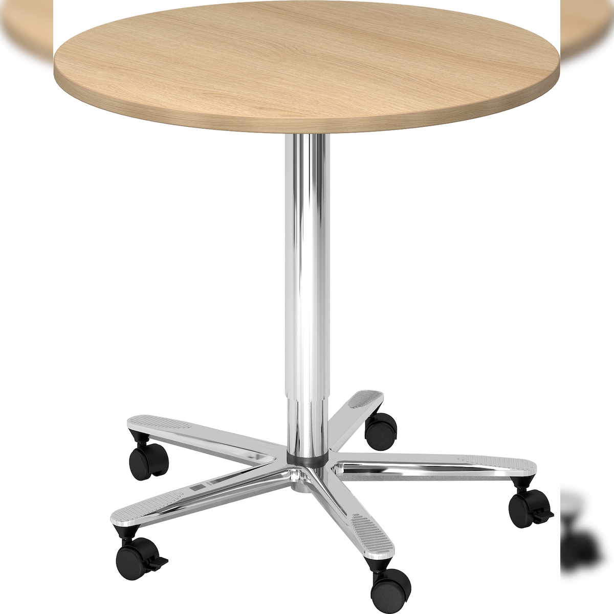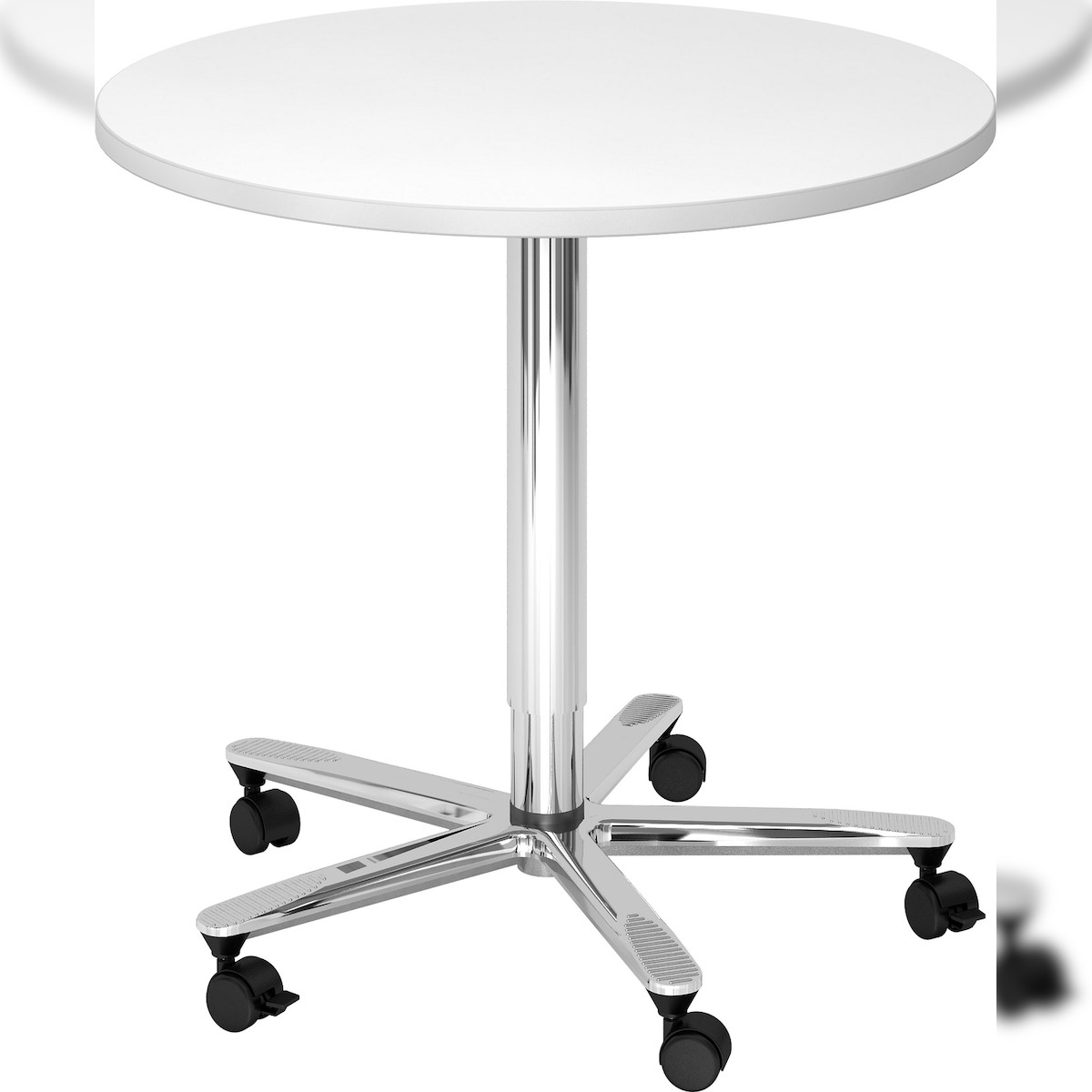 bümö Stehtisch Büro, Bistrotisch rund 80 x 80 cm - Bartisch weiss, Stehtisch Holz-Platte, Säule aus Metall verchromt, Buffettisch, Säulentisch,