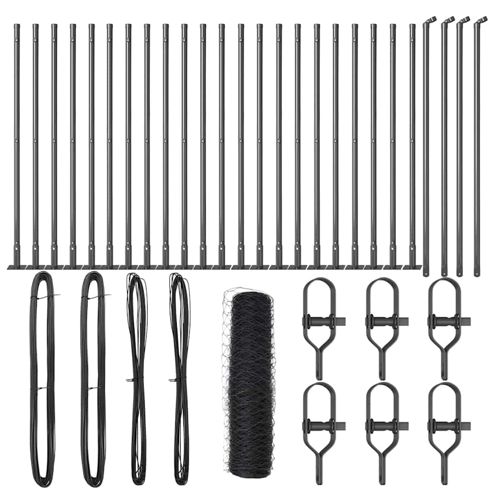 vidaXL Zaunpfosten Grau 50 x 0,5 m (25 mm Maschen) Stahl und PVC