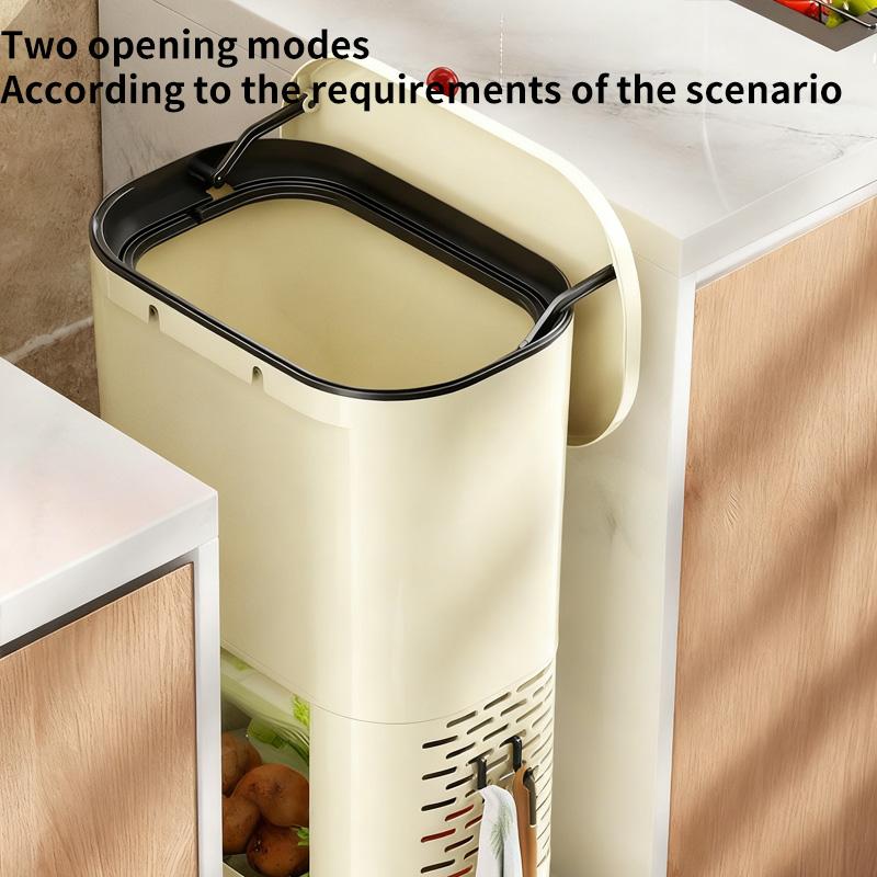 Kitchen Garbage Bin Storage Rack, Floor-Standing with Wheels, Movable & Raised, No-Bending Miscellaneous Storage Rack
