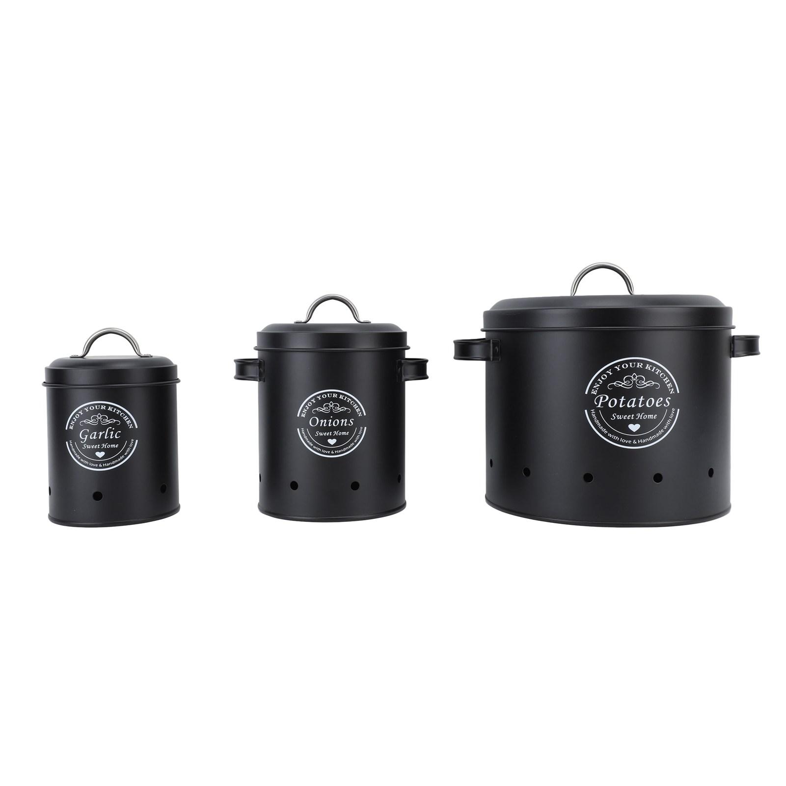 3PCS Potato Onion Storage Bin Carbon Steel Farmhouse Potatoes Holder Kitchen Storage Canisters Jars Containers for Countertop