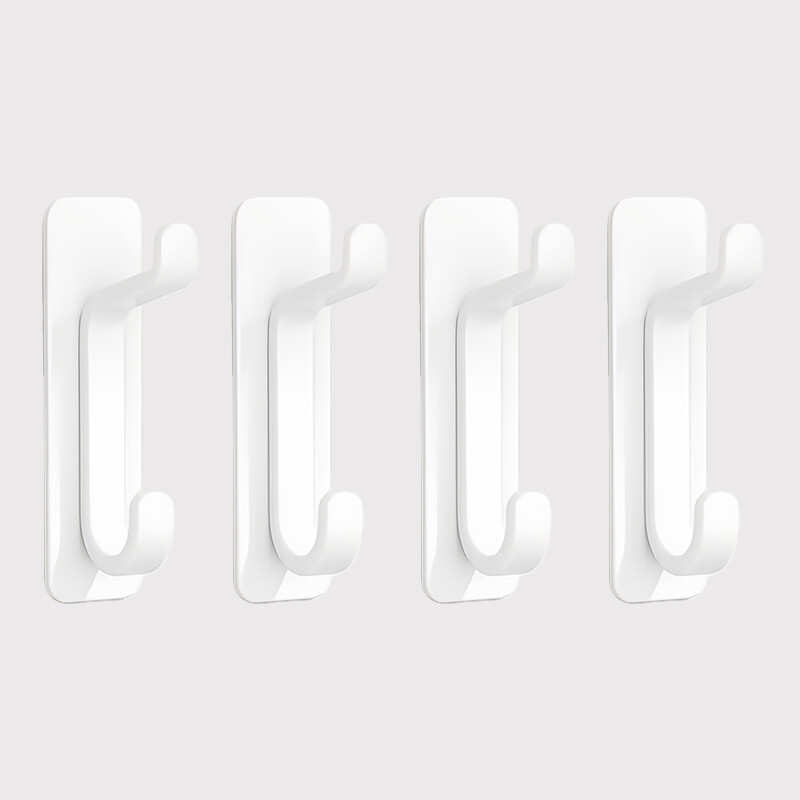 JORDAN&JUDY No-Drill Strong Adhesive Hooks, 4-Pack, Stainless Steel, Damage-Free, Over-Door Storage, White
