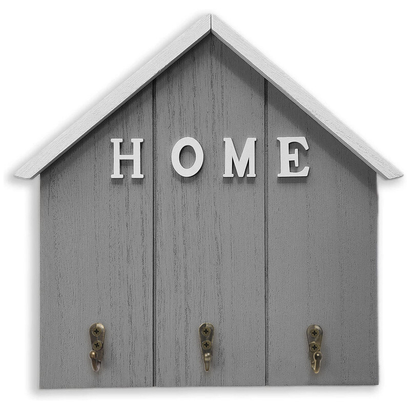 1pc House-Shaped Key Holder, "HOME" Wall Mounted Organizer with 3 Antique Metal Hooks, Entryway Storage Rack for Keys & Mail,Grey
