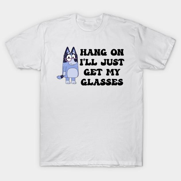 Men Black Print T-shirt Hang On I'Ll Just Get My Glasses Bluey Vintage Cartoon No-Cut Transfer Paper Print Cotton Tshirt cm white