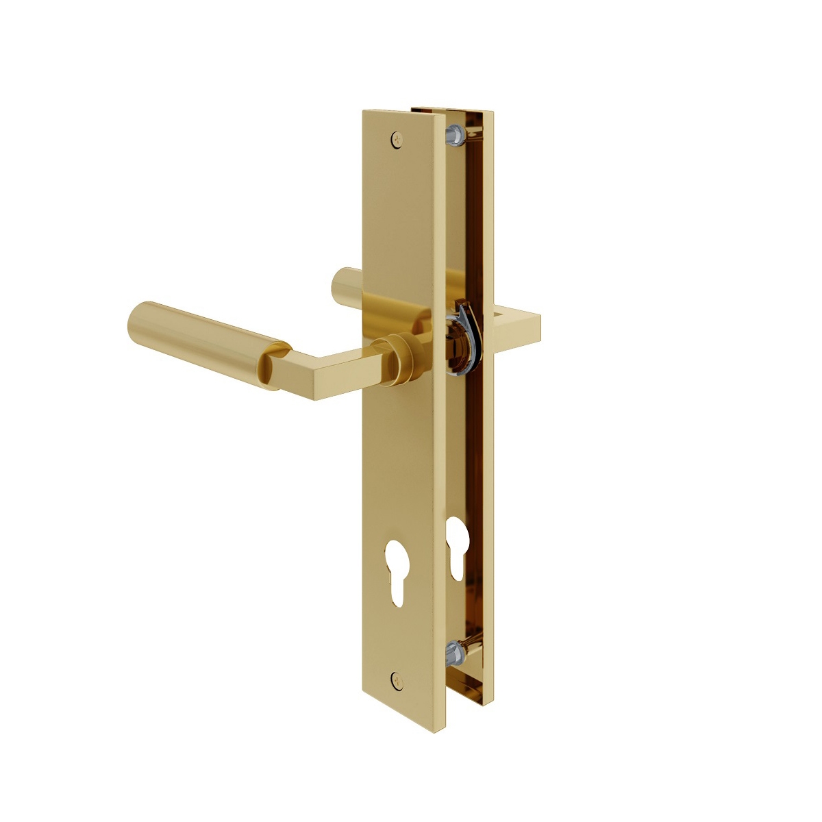 MS Beschläge Langschildgarnitur Baustil Türdrücker Messing Optik Profilzylinder