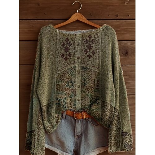 Camicia da donna con maniche lunghe floreale grafica boemia etnica quotidiana a manica 3/4 colletto rotondo colletto a barca top regolari stampa nera rossa arancione beige estate primavera