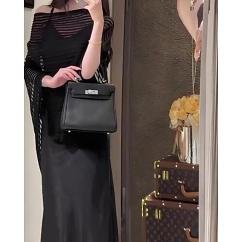 Per donna Felpa Maglione Streetwear Casual A righe Scollo a Barca Traforato Lavorato a maglia Orlo asimmetrico Manica Lunga Top Regolari Maglia Quotidiano Ferie Uscire Nero Bianco Estate
