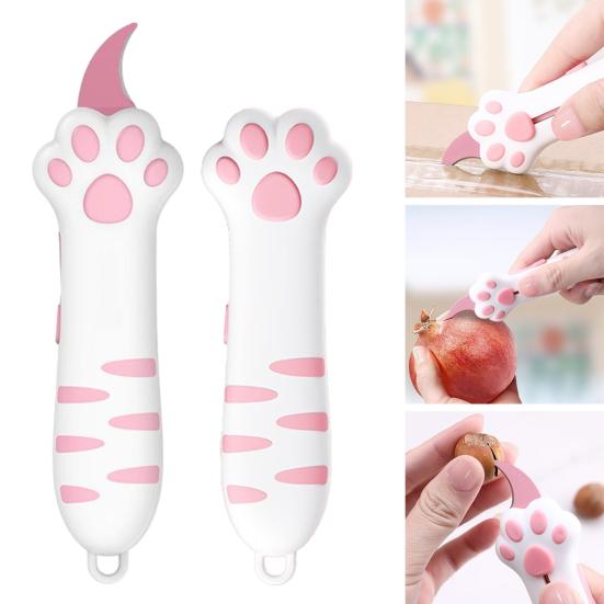 Cat Claw Knife Retractable Cute Cat-Shaped Packing Tape Cutter for Women Portable Unpacking Tool Practical Gift pink