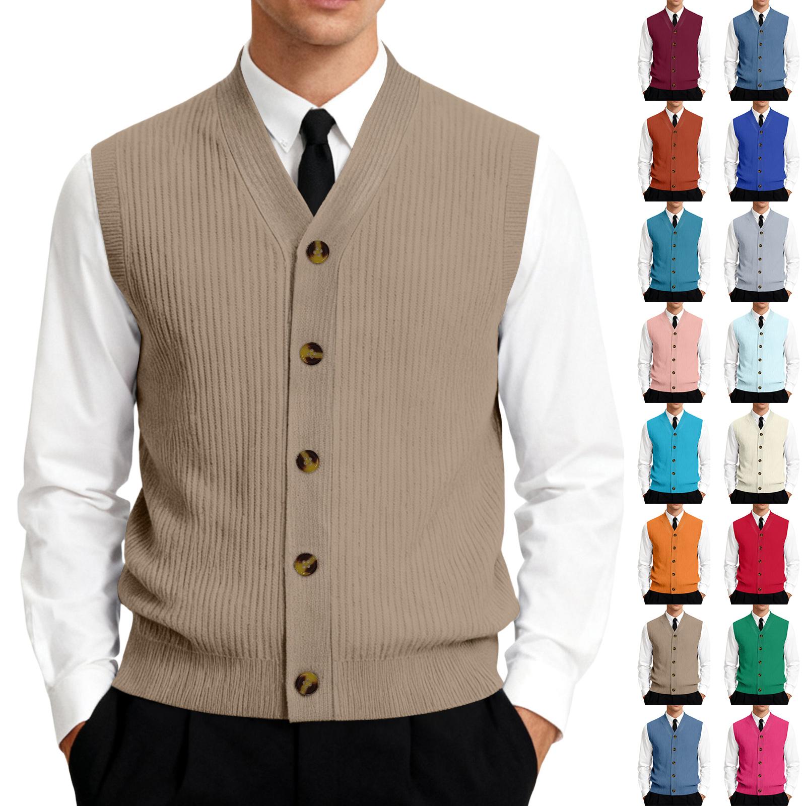 Men's V-Neck Sleeveless Knit Cardigan Vest cm pink