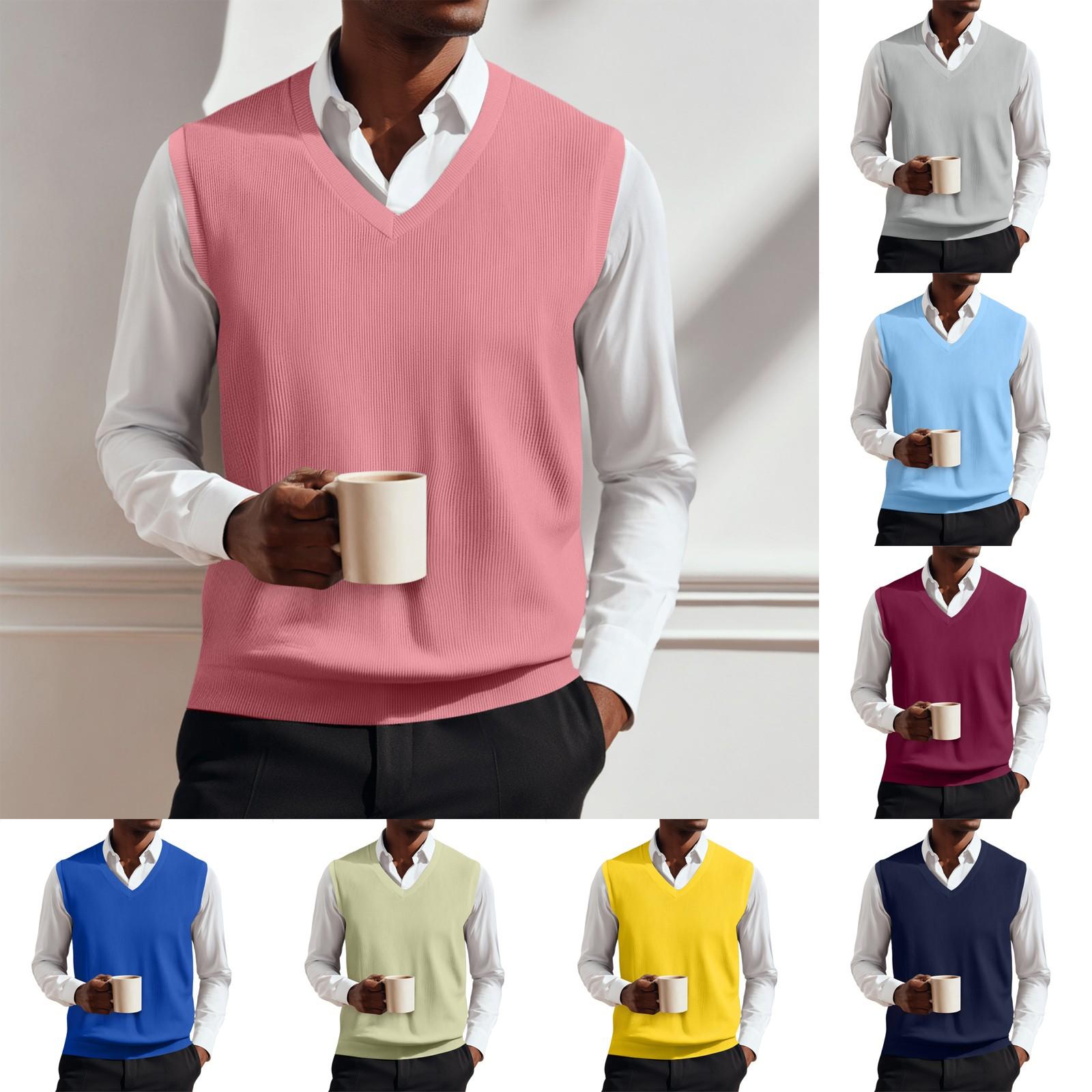 Men's V-neck Vest Sleeveless Knitted Pullover cm pink