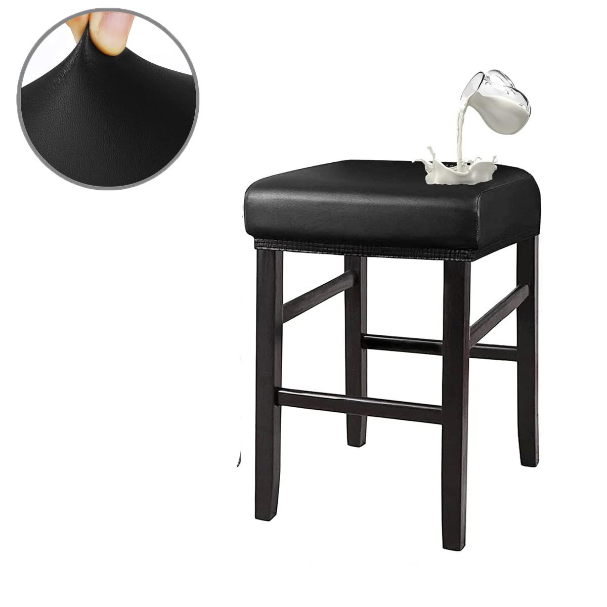 PU Leather Bar Stool Covers Rectangular 100% Waterproof Oilproof Stool Covers Thicker Leather Saddle Stools Slipcover
