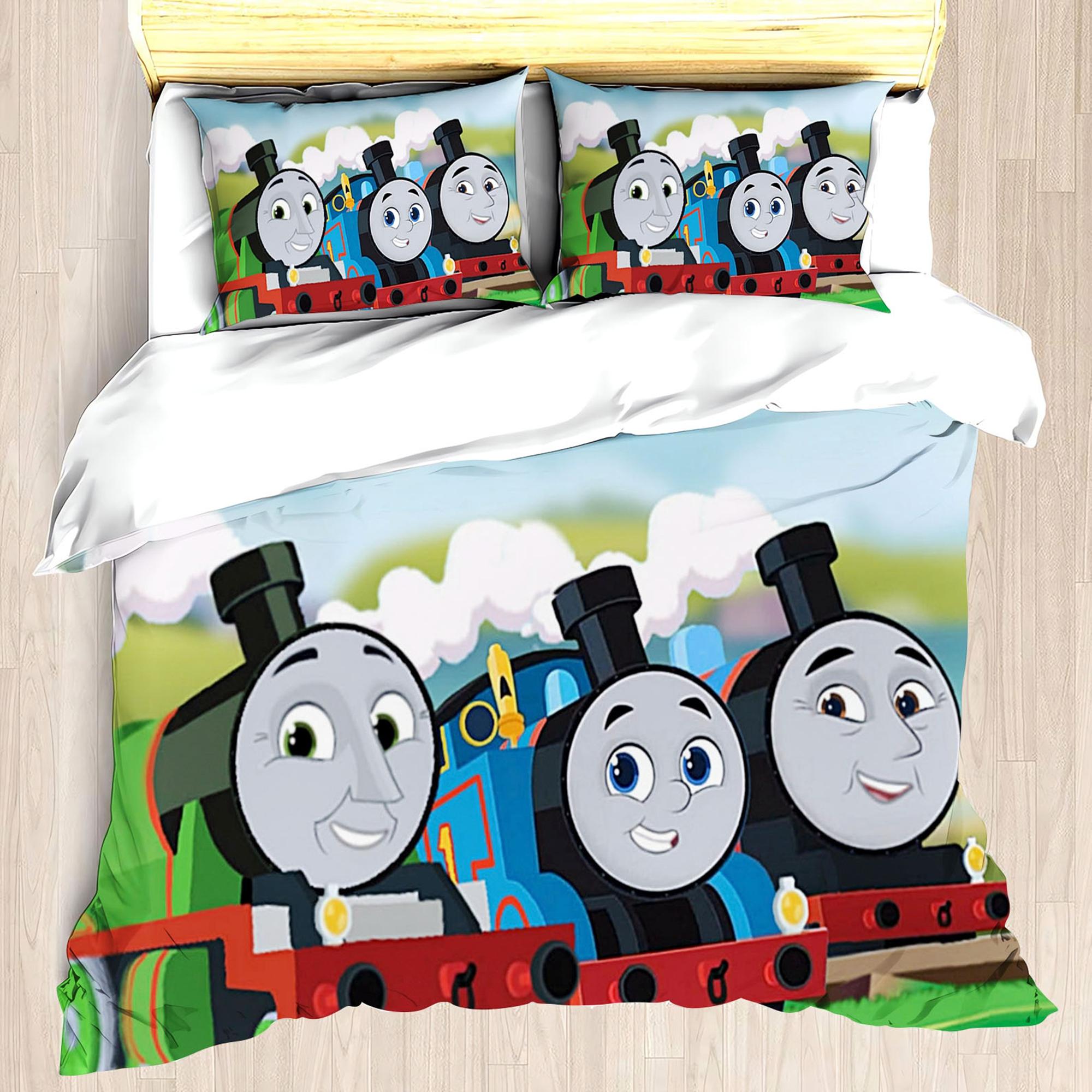 Cartoon Train Print Thomas Quilt Cover 3D Cute Decor Print Comfortable Bedding Set Teenager Children Soft Breathable Bedding