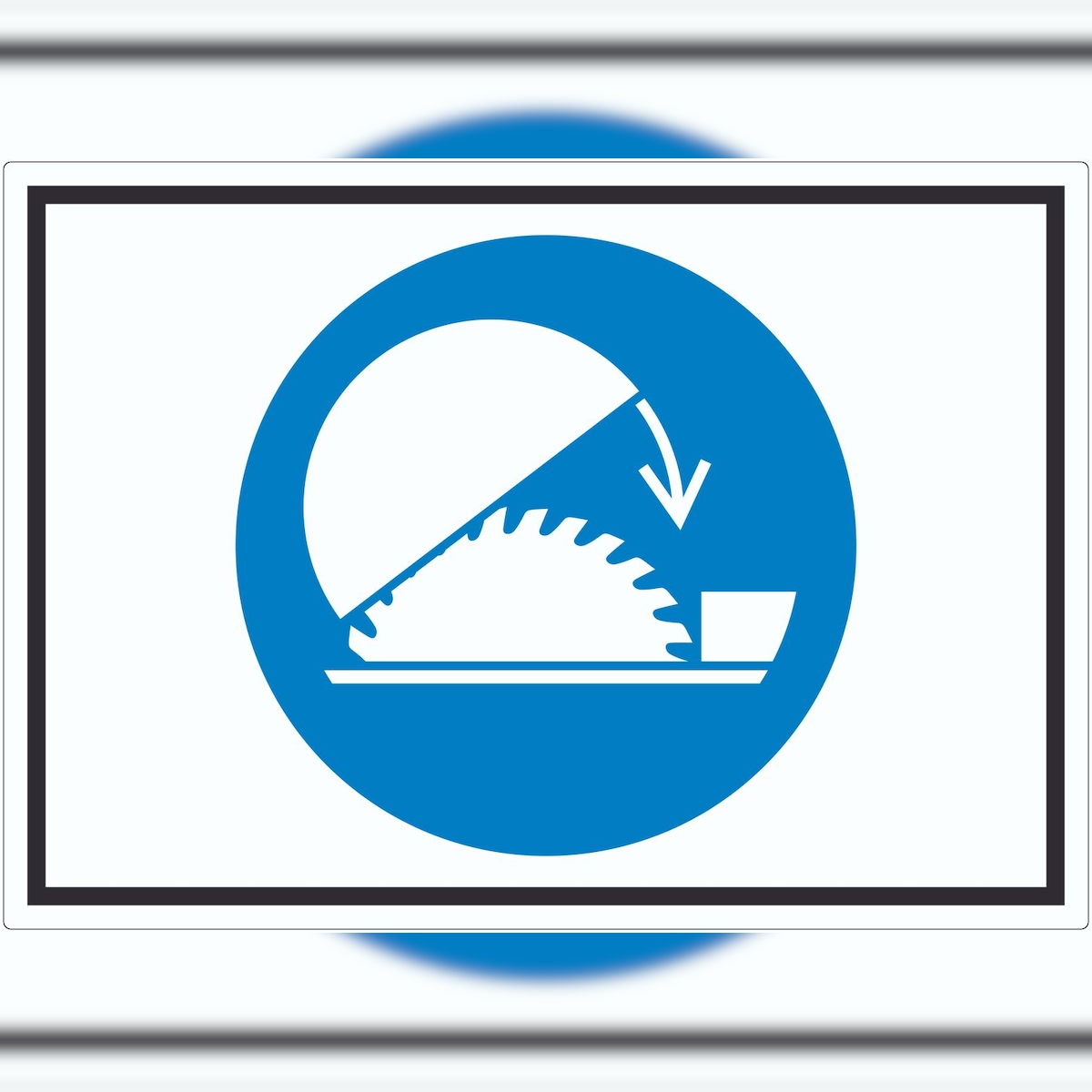 HB-Druck Schutzhaube der Tischkreissäge benutzen Symbol Schild A4 Rückseite selbstklebend