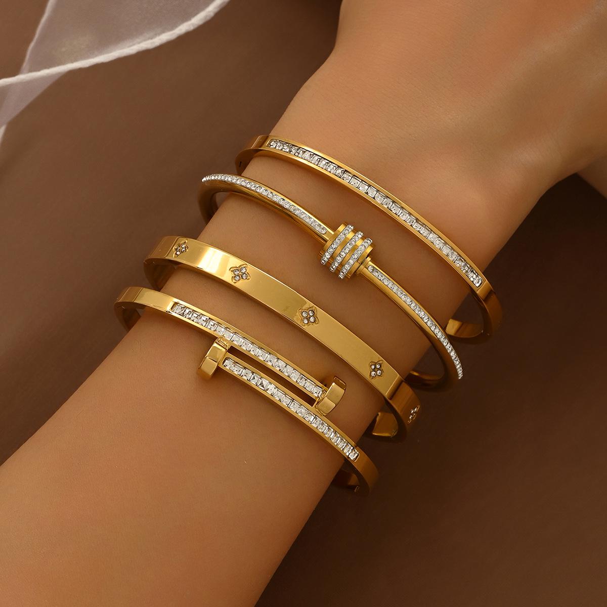 2023 Luxus Frauen Zirkon Überzogene 18K Gold Armbänder Nicht Verblassen Titan Stahl Männer Armband Paar Hohe Schmuck Geschenke