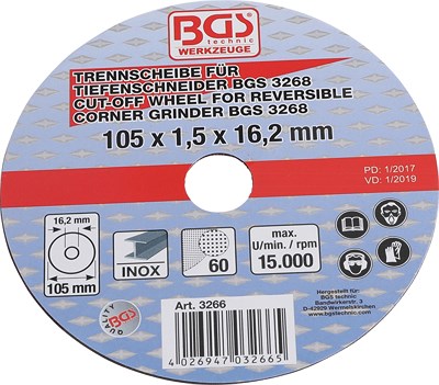 Bgs Trennscheibe für Tiefenschneider - Ø 105 x 1,5 x 16,2 mm [Hersteller-Nr. 3266]