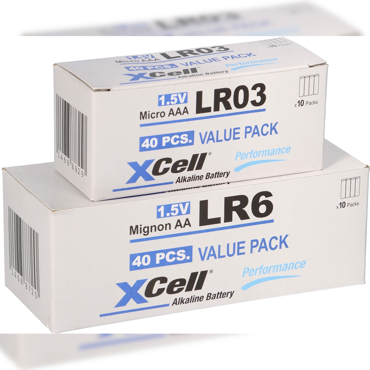 80 Batterien 40x XCell LR03 Micro AAA + 40x XCell LR6 Mignon AA