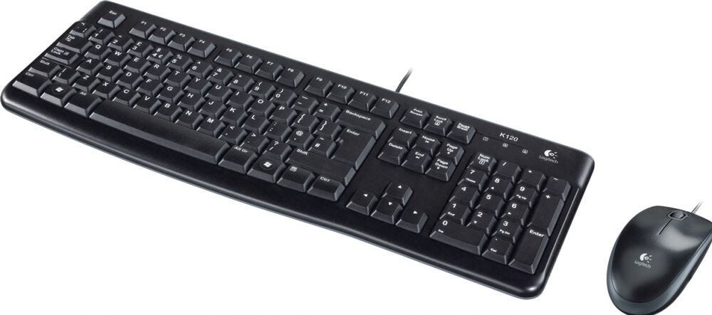 Logitech MK120 USB Tastatur, Maus-Set Spritzwassergeschützt US-International, QWERTY Schwarz