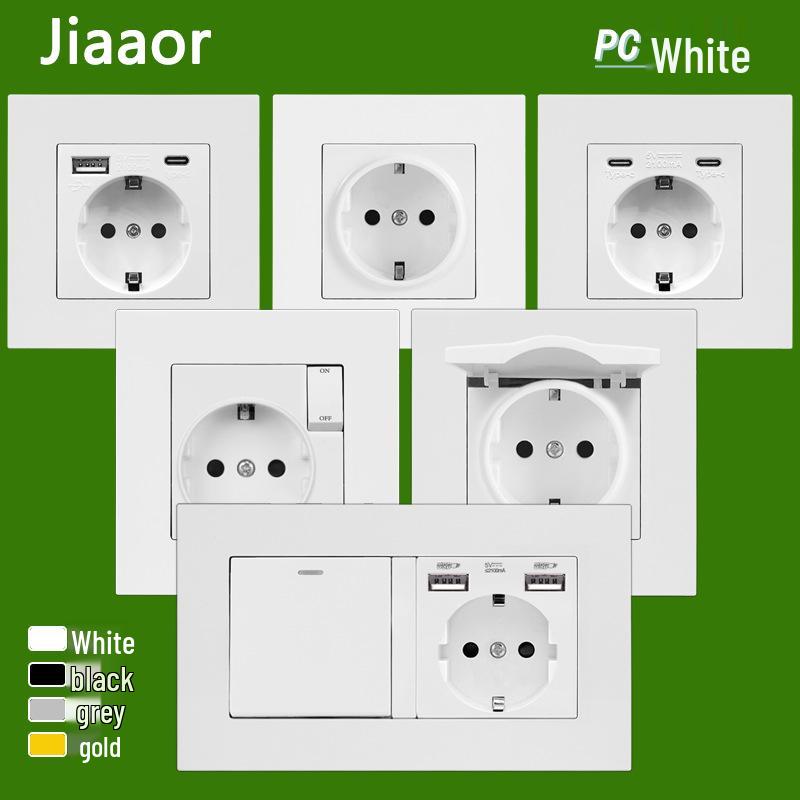16A Weißes Europäisches Doppel-Schalter- und Steckdosenpanel mit USB + Typ C, Deutscher Stil