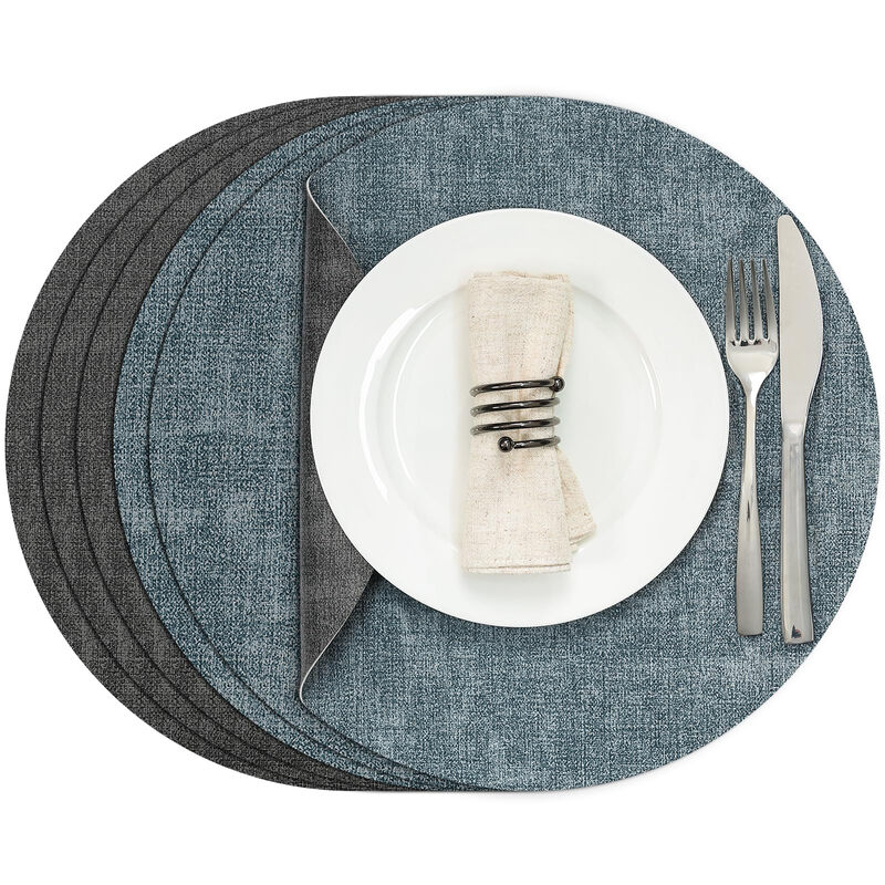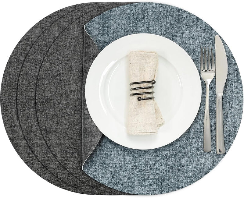 14.9" Round Placemats , Dual-Sided Faux Leather Heat Resistant Table Mats, Waterproof Oilproof Washable Protective Table Placemats , Wipeable Vinyl for Indoor & Outdoor Use,4pcs