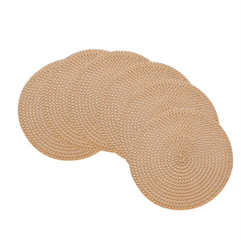 White Label 6pcs PAPER Placemats Set, Paper braided placemat Beige,Round Woven Table Mats, 100% PAPER Heat-Resistant Washable Dining Decor, Checkered Pattern for Home & Kitchen Use