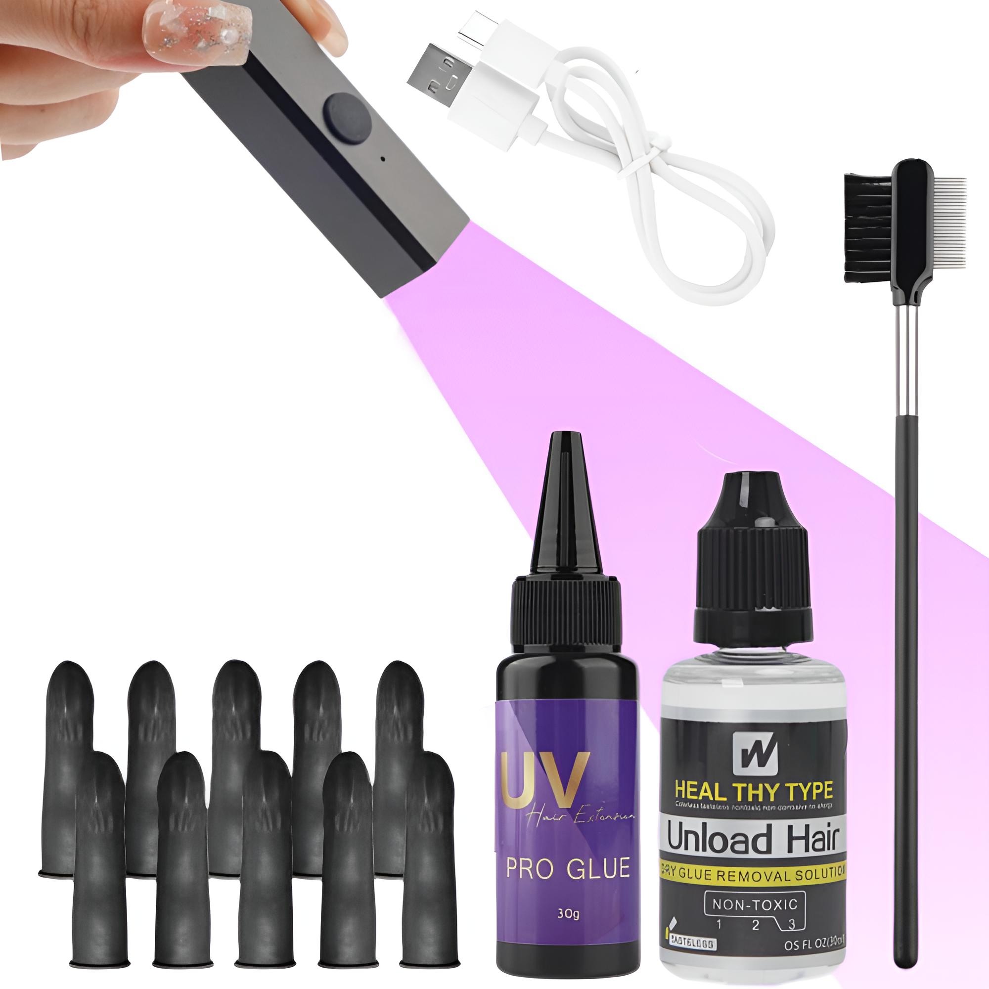 UV Light Hair Extension System Tool Kit UV-light Glue with UV Light Hair Extension Comb Hair Glue Remover V-light Extension Machine for Hair Salon