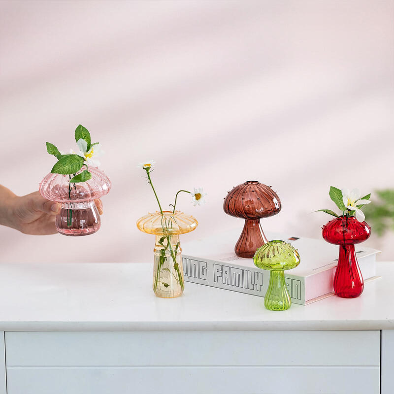 Lot de 5 Pots en Verre Champignon Colorés pour Bouturage de Plantes Mini Terrarium Déco pour Plantes d’Intérieur Petit Vase en Verre Original pour Fleurs Cadeau Mignon pour Femmes – Décoration de Chambre