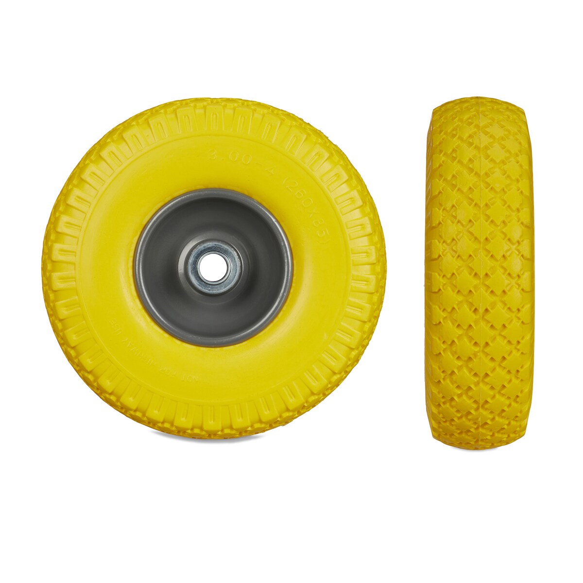 Relaxdays 2x Sackkarrenrad, pannensichere Vollgummireifen, 3.00-4" Stahlfelge, 20mm Achse, 100kg, 260 x 85 mm, gelb-grau
