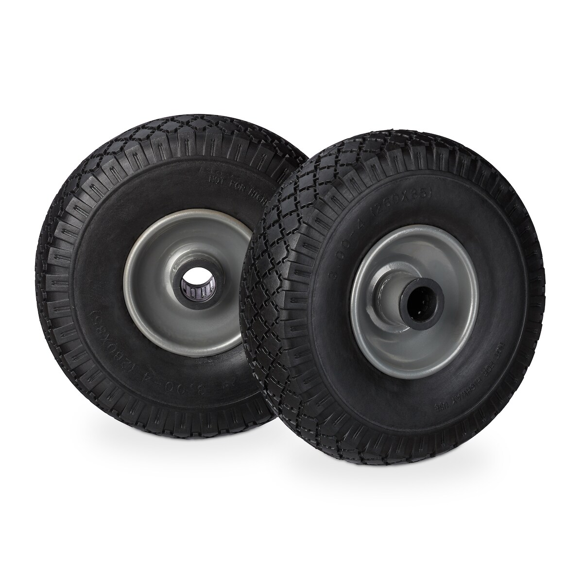 Relaxdays Sackkarrenrad 2er Set, pannensichere 3.00-4" Vollgummireifen, 25mm Achse, bis 80 kg, 260x85 mm, schwarz