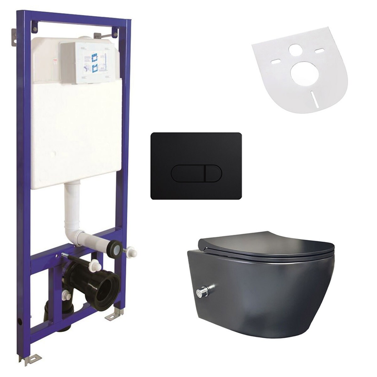 Alpenberger Schwarze Toilette mit Vorwandelement Komplettset | Spülrandloses Hänge WC mit Geberit Spülkasten und Betätigungsplatte | Klo mit WC Deckel