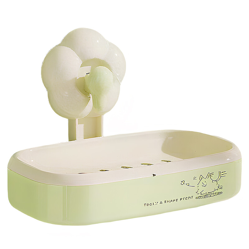SNSP Wall-Mounted Drill-Free Flower-Shaped Soap Box - Drainable - Mint Green