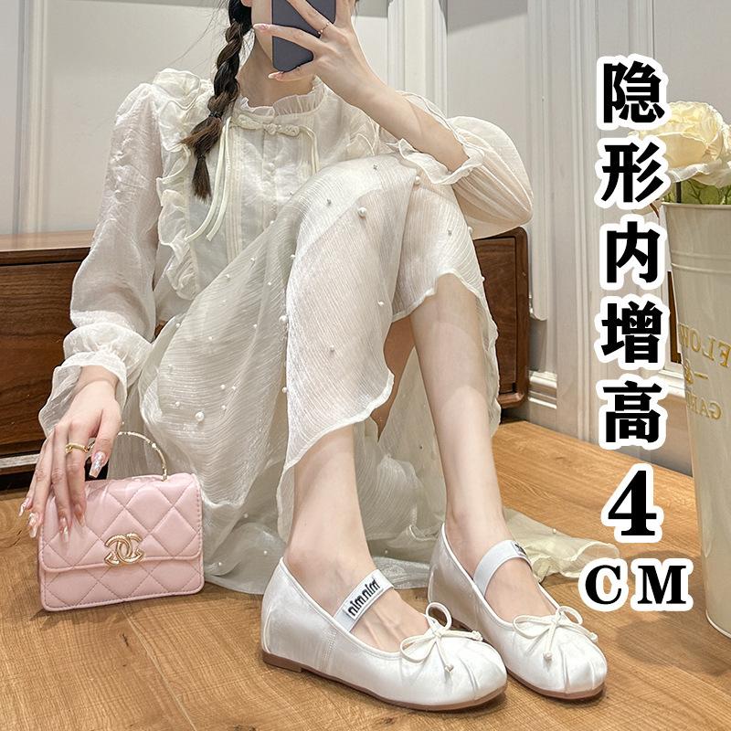 Miu * ballet schoenen met interne hoogteverhoging voor dames 2025 nieuwe feeënstijl strik woord met platte zool ondiepe mond enkele schoenen voor dame