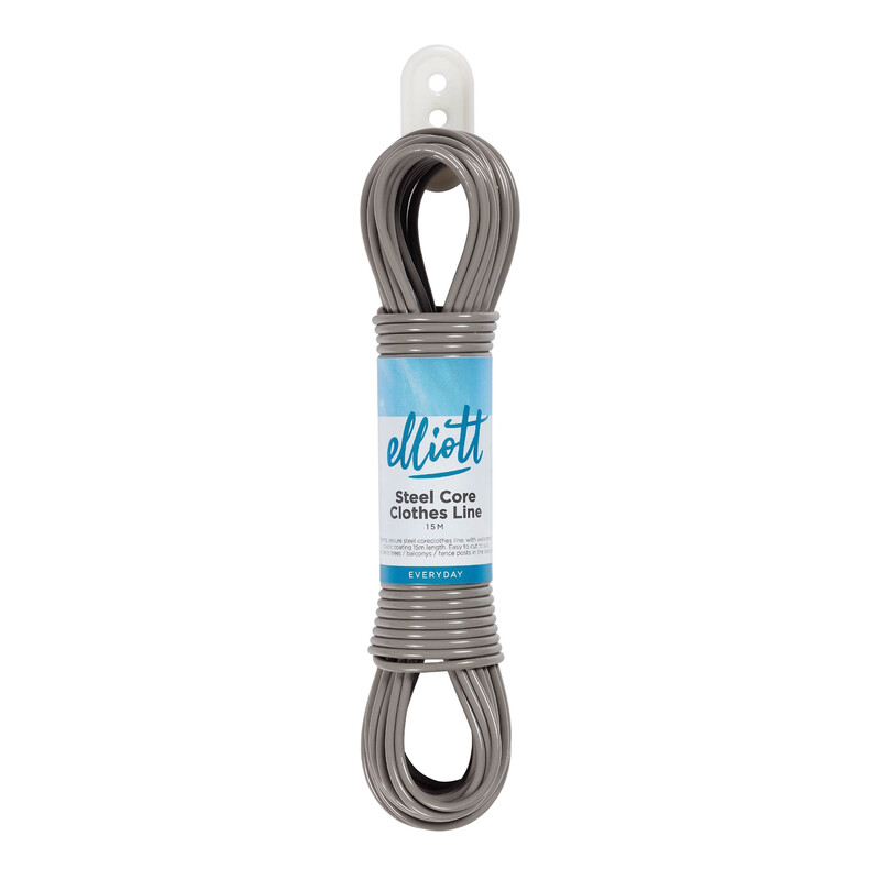 Elliott Steel Core Clothesline, 15 Meters, Extra Strong, PVC Coated Weather and Rust resistant Washing Line. Laundry Essential for outdoor use, laundry rooms and camping,White/Grey