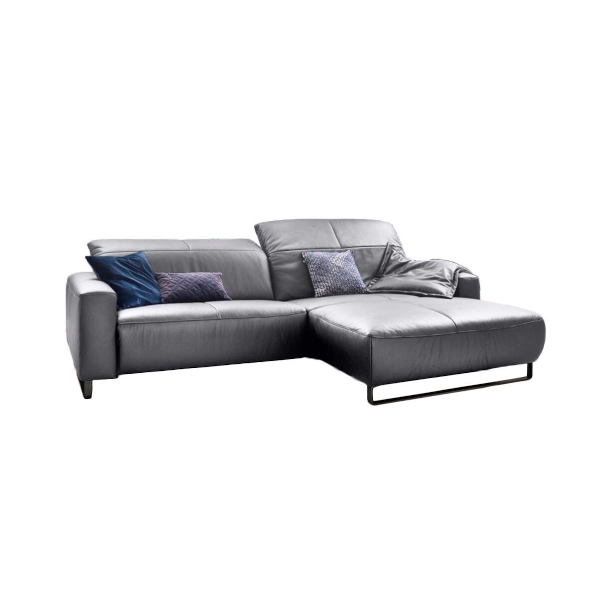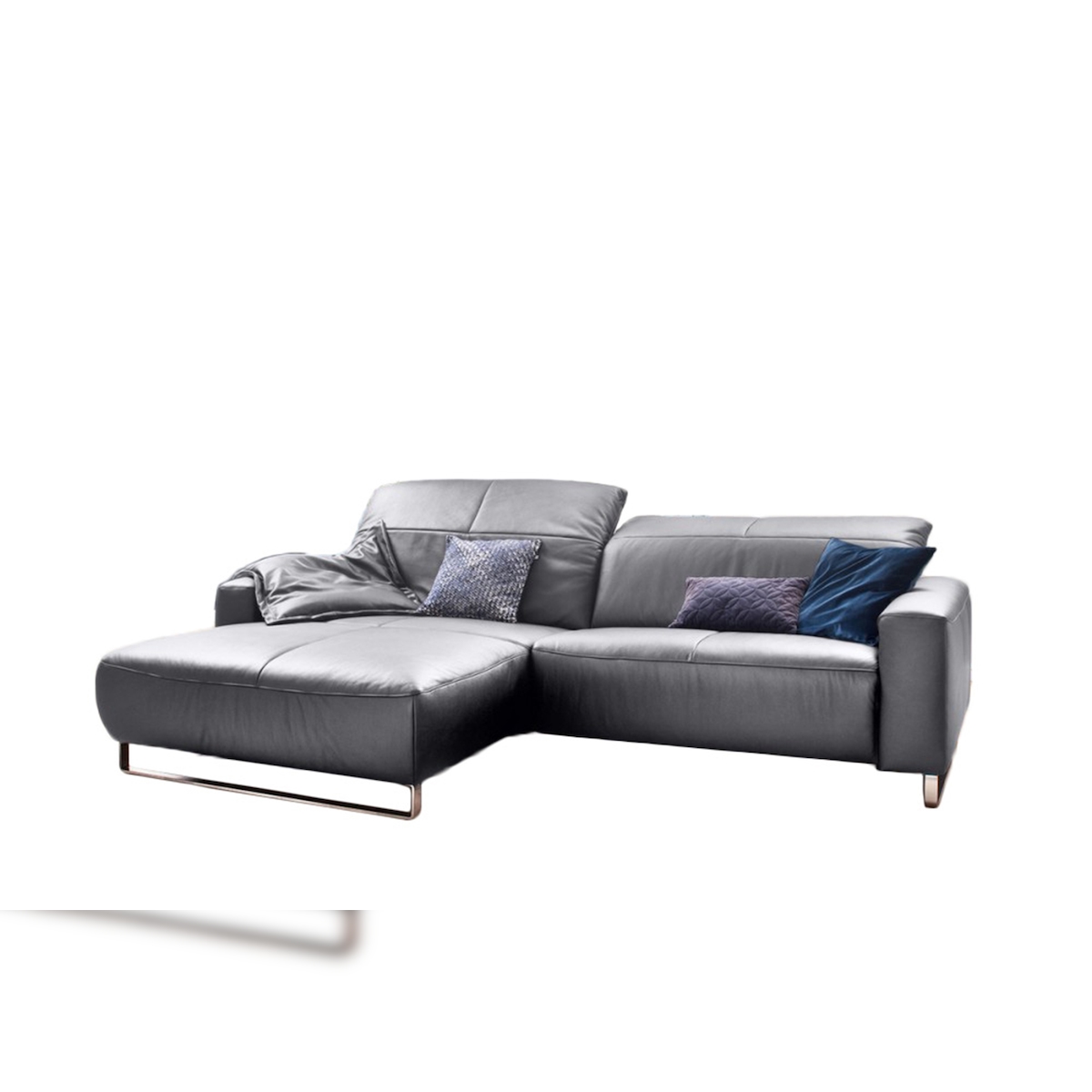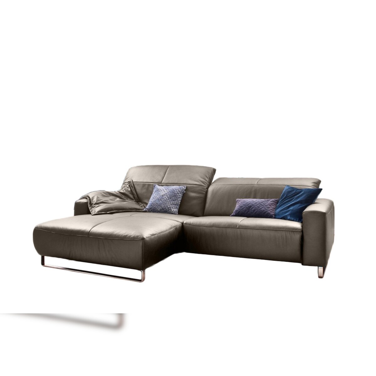 KAWOLA Sofa YORK Leder Life-line light-grey Rec rechts Fuß Metall Chrom matt mit Sitztiefenverstellung