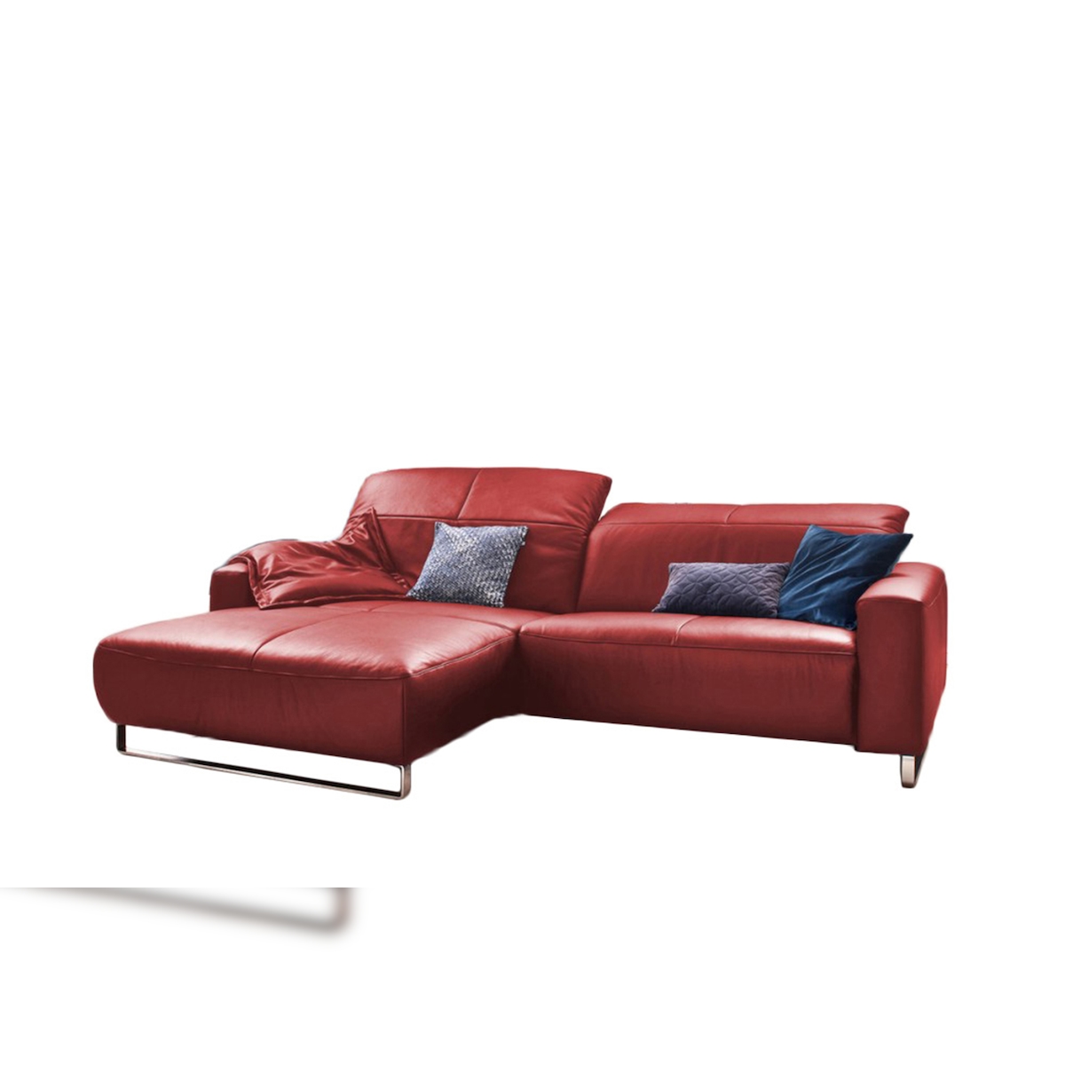 KAWOLA Sofa YORK Leder Life-line rot Rec rechts Fuß Metall schwarz mit Sitztiefenverstellung