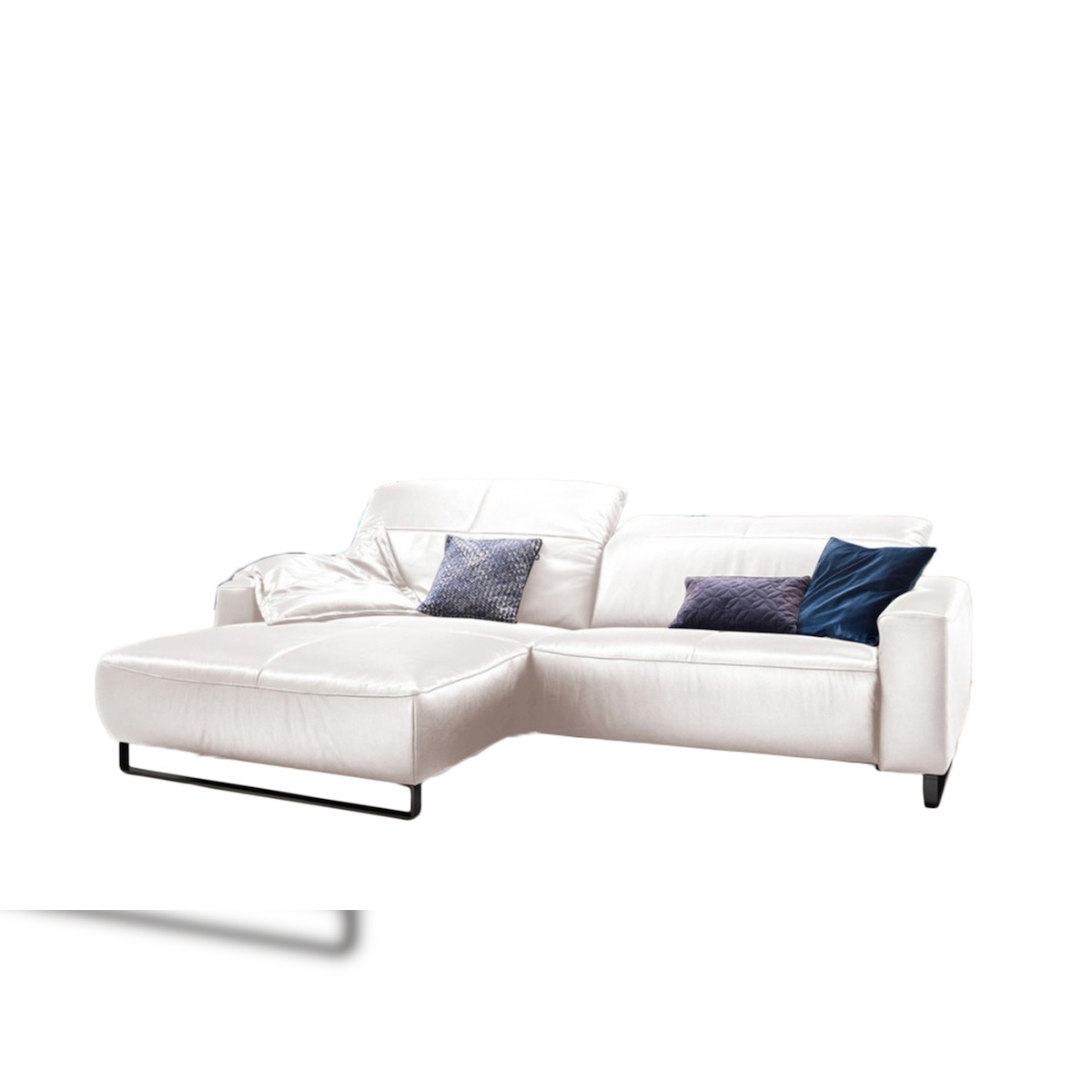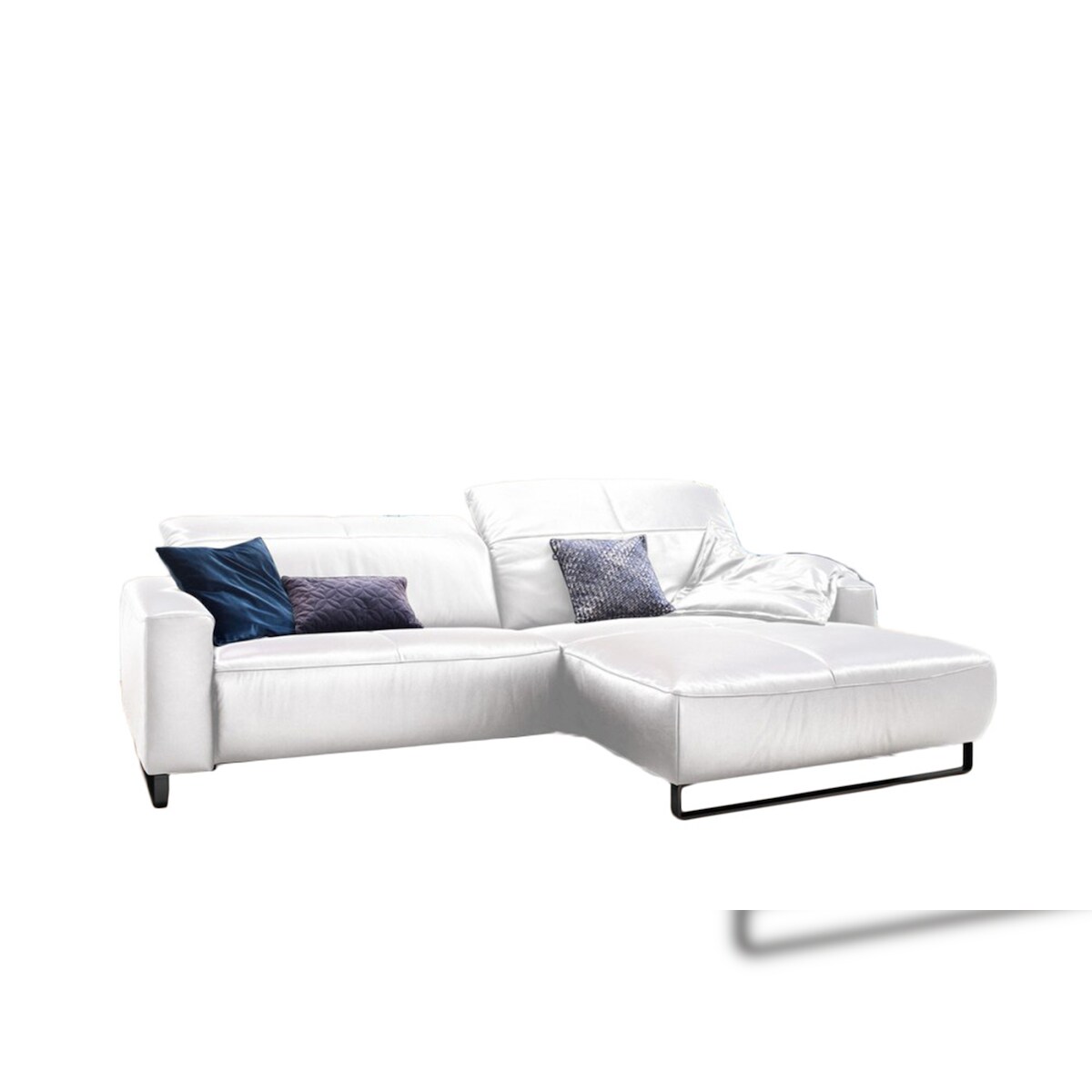 KAWOLA Sofa YORK Leder Life-line white Recamiere rechts Fuß Metall schwarz