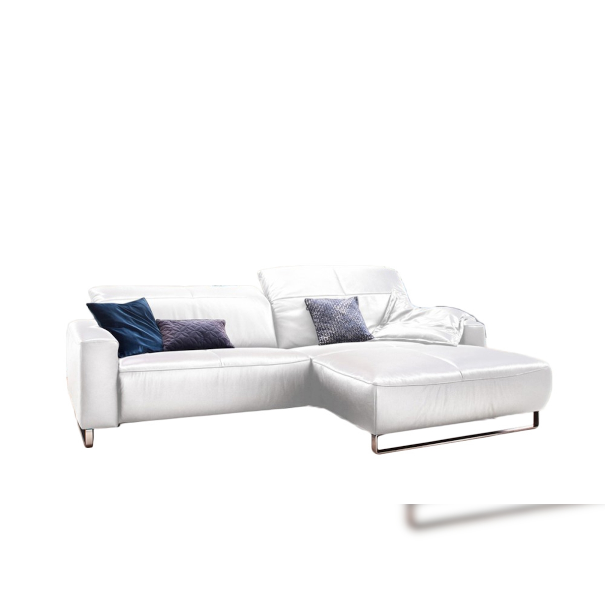 KAWOLA Sofa YORK Leder Life-line white Recamiere rechts Fuß Metall Chrom matt