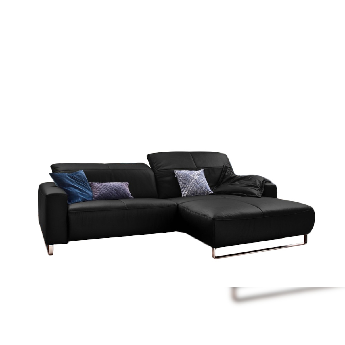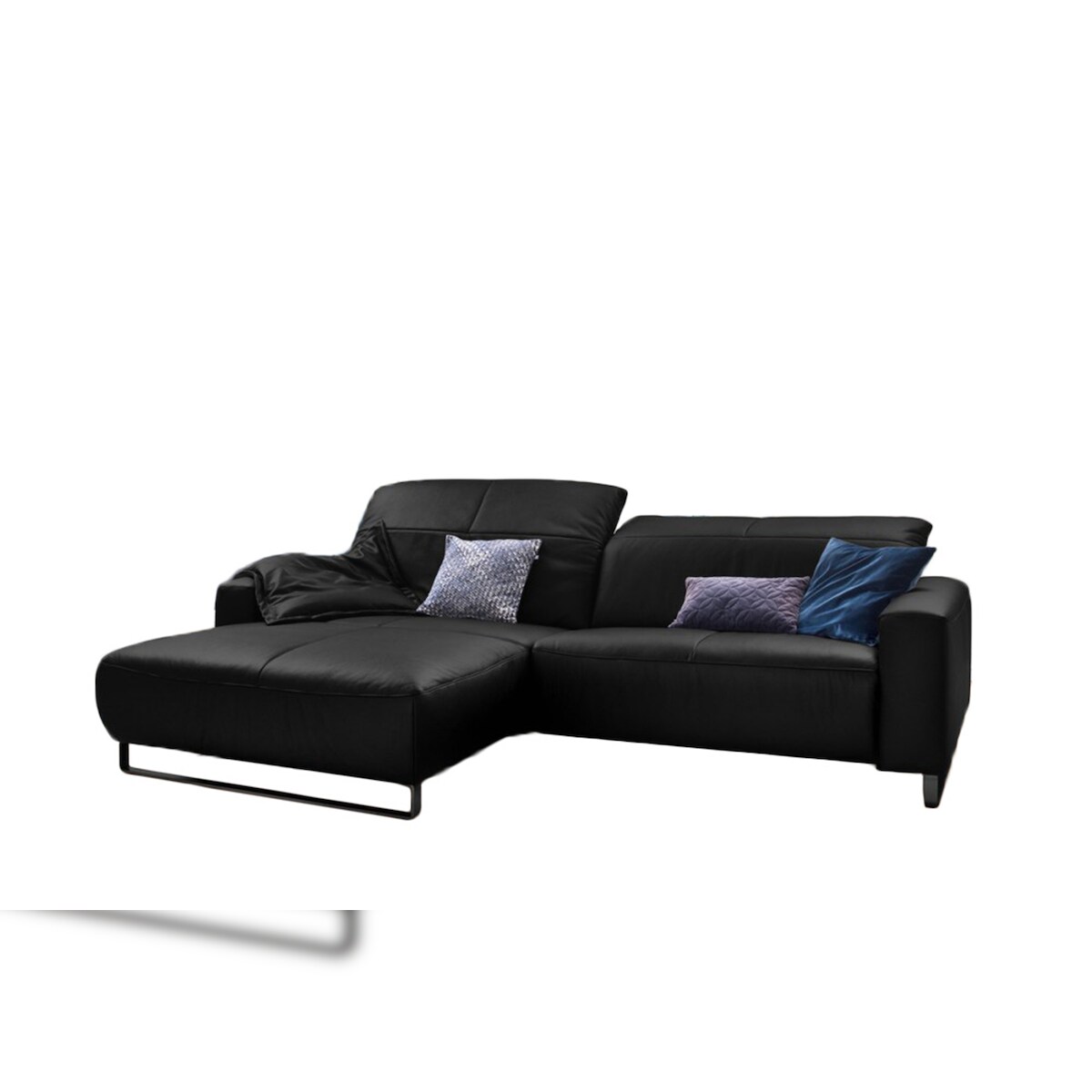 KAWOLA Sofa YORK Leder Life-line schwarz Recamiere links Fuß Metall schwarz