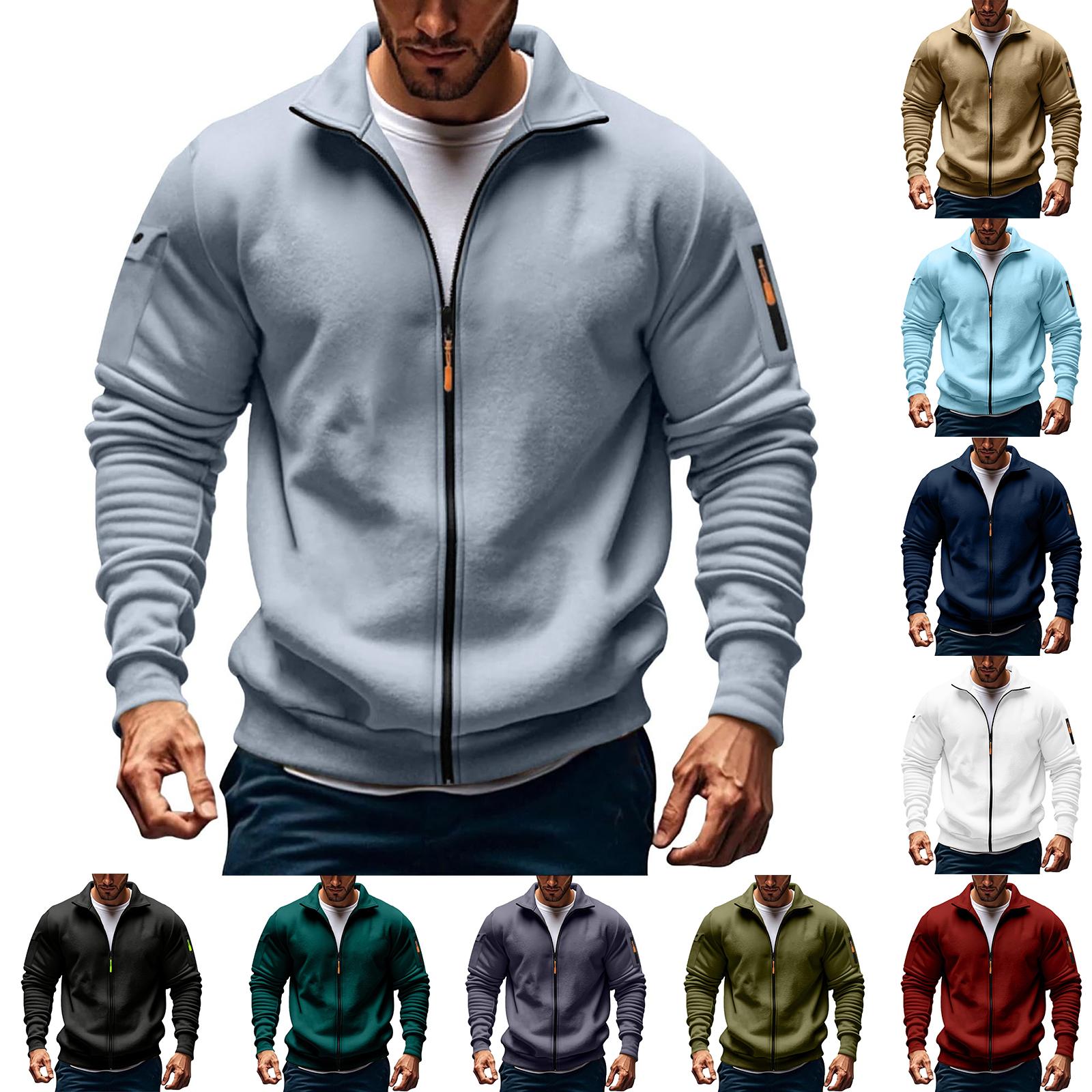 Mens Full Zip Sweatshirts And Tall Casual Stand Collar Workout Jackets Outdoor Lightweight Athletic Coat cm