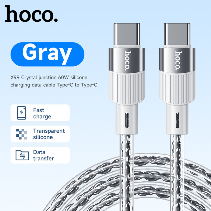HOCO X99 60W Crystal Junction Silicone Charging Cable - USB-C to USB-C - Grey