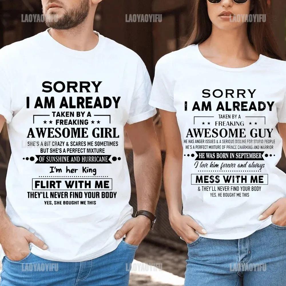 Sorry Ik Ben Al Bezit Van Een Geweldige Man Echtgenoot Koppel T-shirt Mode Grappig Man en Vrouw T-shirt Korte Mouw cm