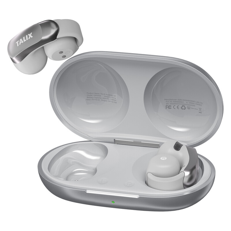 TALIX By Lenovo Ultra-leichte Clip-On Bluetooth-Ohrhörer, klare Anrufe mit 4 Mikrofonen, 28 Std. Akku, Schnellladung, Bluetooth 5.3, IPX4 wassergeschützt, Silikon-Ohrbügel, G1, Grau